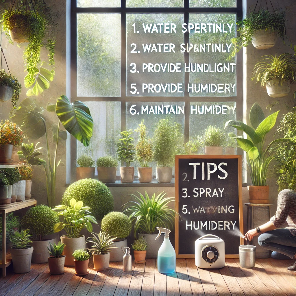 ✅ 특히 열대성 식물은 높은 습도를 필요로 하니, 잎에 분무기를 사용해 자주 물을 뿌려주는 것이 좋습니다.